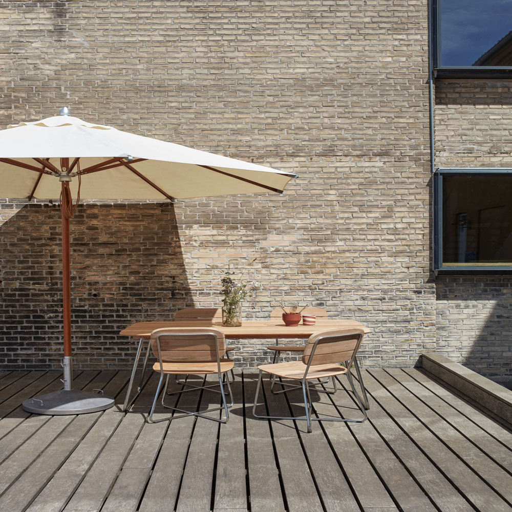 En parasol til terrassen og den store have