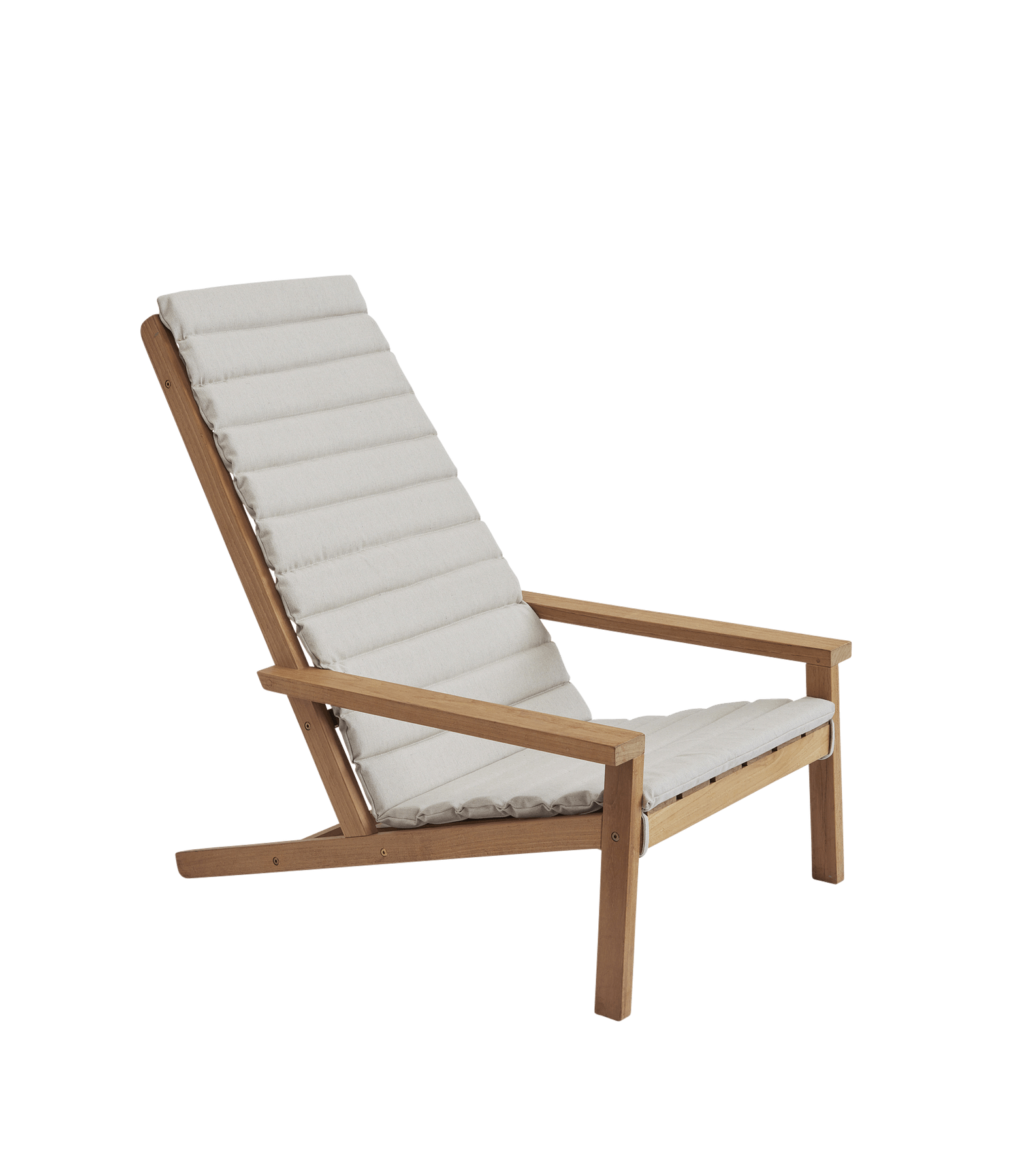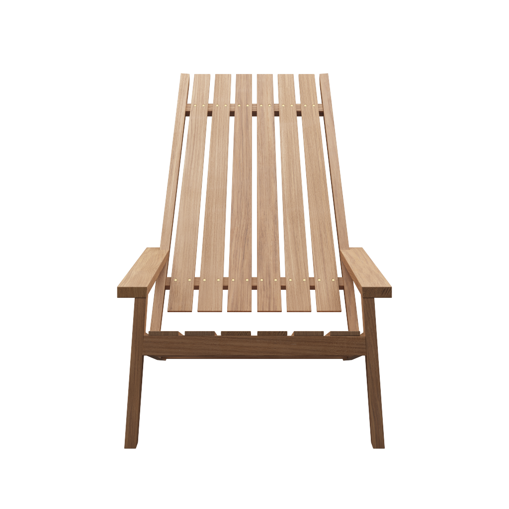 Between Lines dækstolen er i både funktion og design en moderne udgave af den klassiske amerikanske Adirondack stol. Stolens lange, kantede linjer er skabt til at give komfort. Det tidløse møbel er fremstillet i FSC-certificeret teak og vil med tiden patinere til en smuk sølvgrå tone.