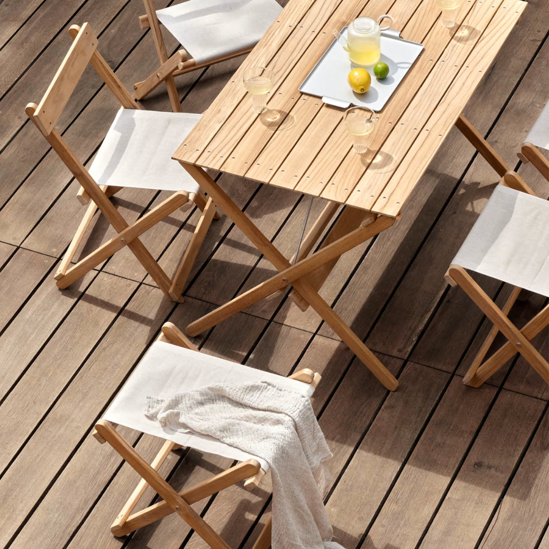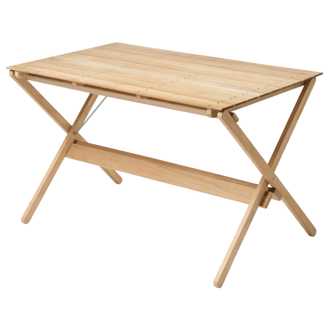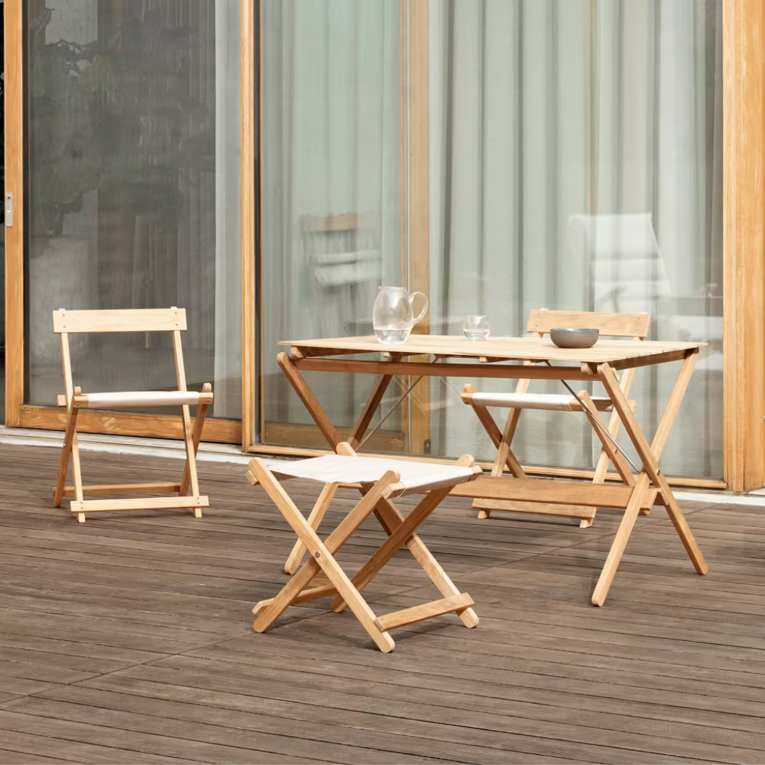 Bordet er en del af hans Dækstolsserie, og dets enkle lamellinjer og solide teaktræskonstruktion sikrer klassisk, holdbar funktionalitet, der passer smukt ind i en lang række uderum.