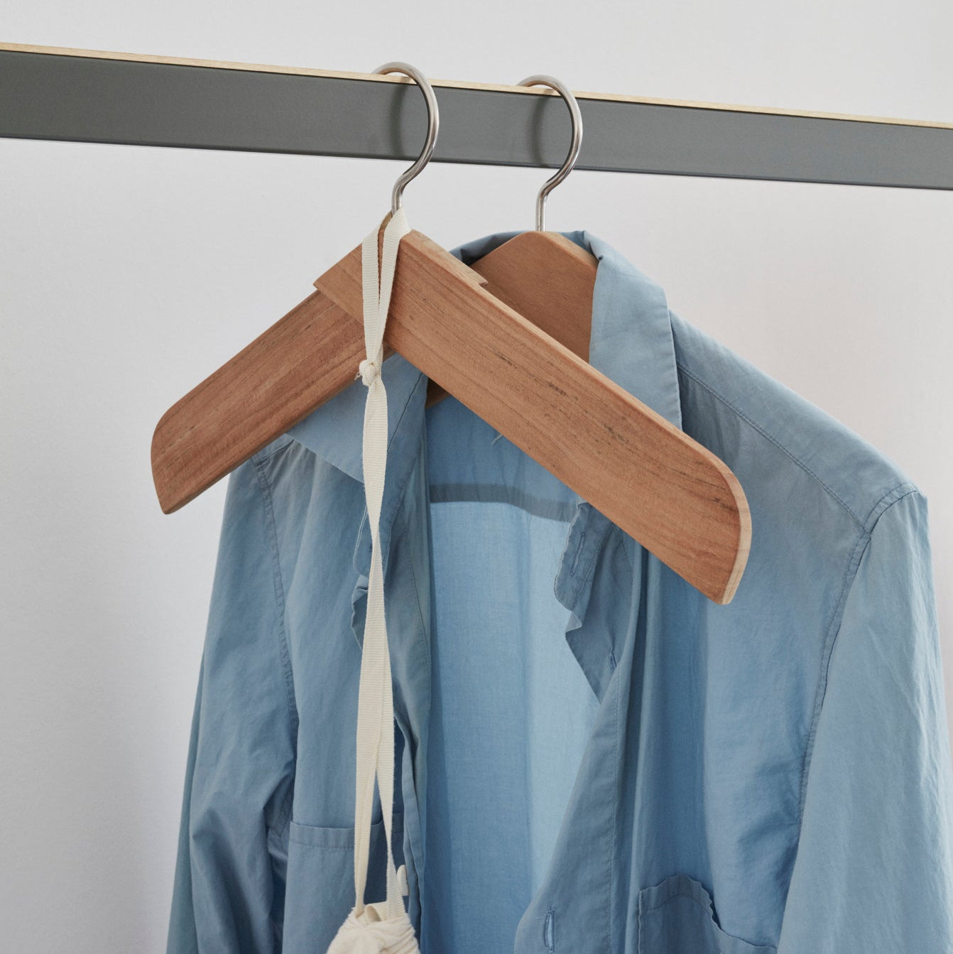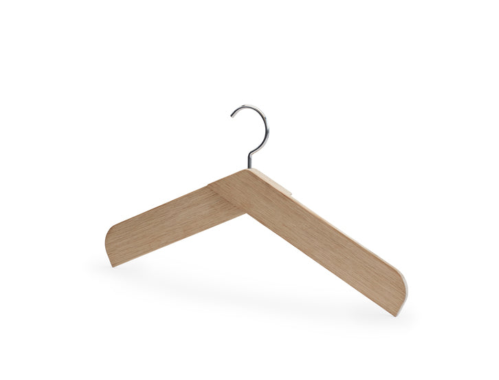 Hæng dine skjorter, kjoler og jakker op på denne moderne Krave bøjle. Designet er lavet af to tynde og overlappende stykker egetræ/teak - hvilket skaber et todimensionelt udseende.