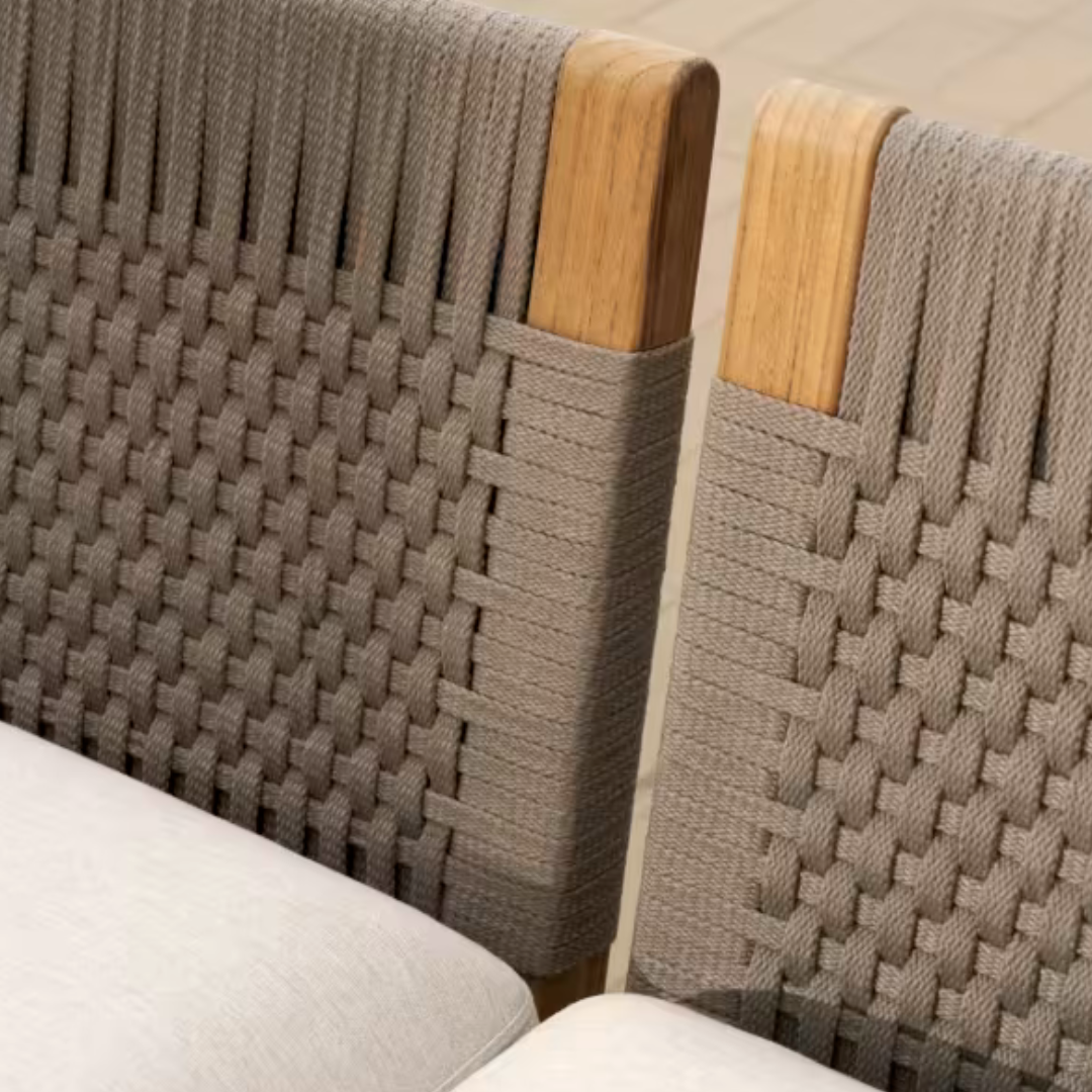 Det flettede ryglæn og de elegante armlæn komplementerer det vejrbestandige polster perfekt, og de bløde puder.