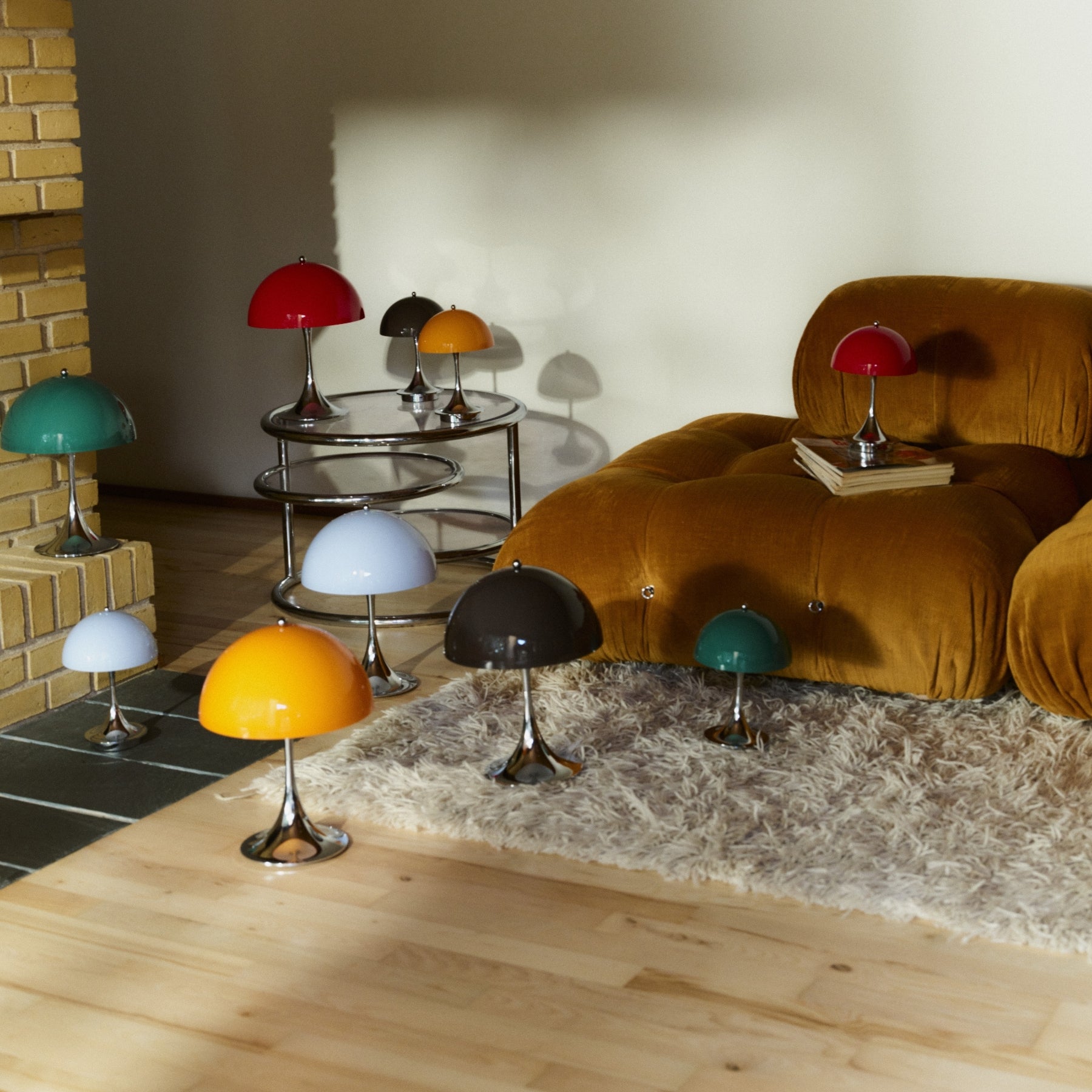 Panthella Originals kommer i to størrelser, 160 og 250. Og er begge en version af den klassiske bordlampe og er nem at placere på vindueskarme, hylder, reoler eller mindre borde. Bordlampen kommer i 5 forskellige skærmfarver med High Lustre Chrome fod. Uanset valg af farve tilfører Panthella 160 og 250 et stemningsfuldt og exceptionelt lys til ethvert rum.