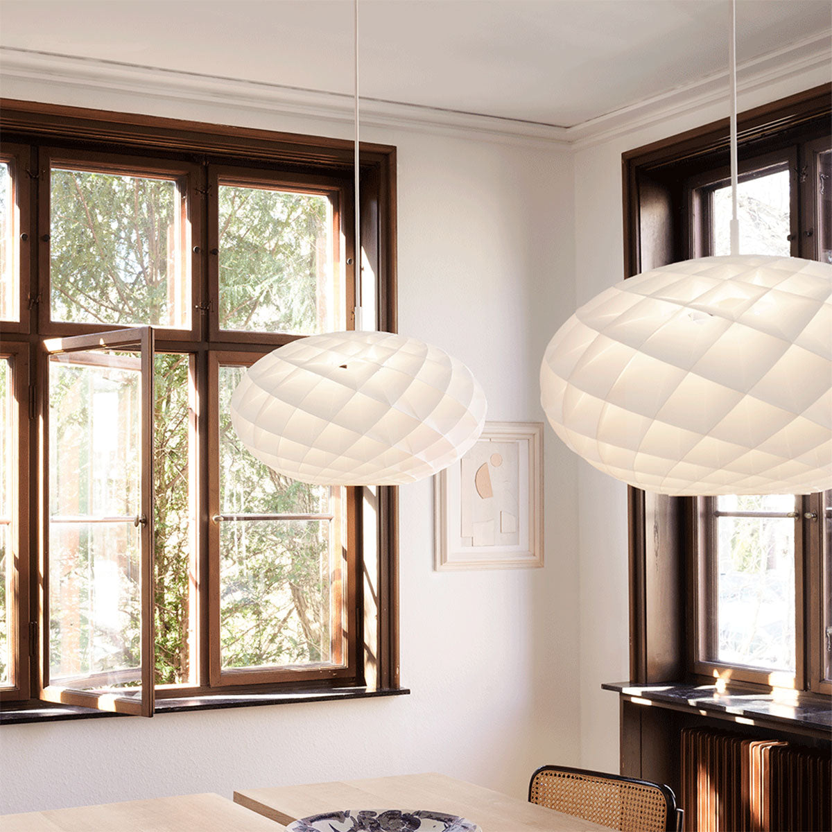 Pendlen udsender både et nedadrettet lys og et opadrettet, stemningsskabende lys, der oplyser loftet. Patera Oval er en poetisk nyfortolkning af den cirkulære Patera. Den er særligt velegnet til rum med begrænset loftshøjde, men gør sig nøjagtigt lige så godt – og er lige så smuk – i rum, hvor der er højere til loftet.