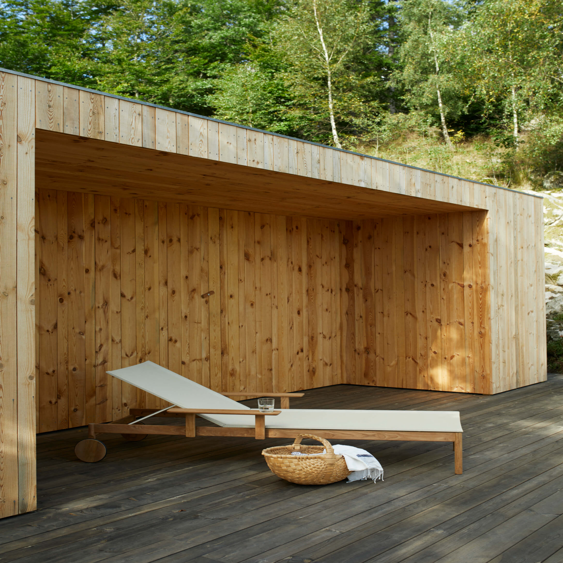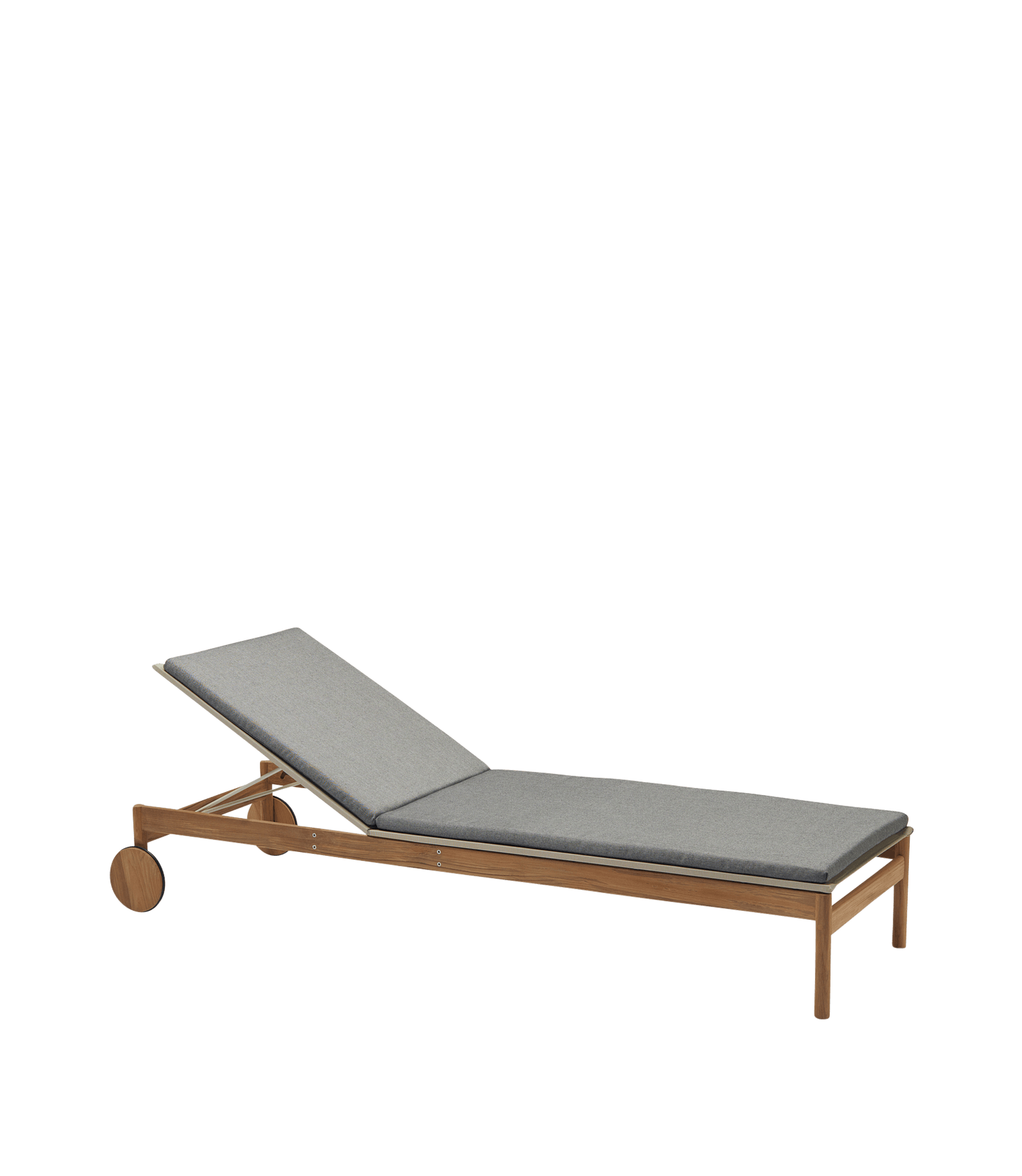 Pelagus solsengen er lavet til total afslapning og æstetisk nydelse og har et markant, men underspillet designsprog. Den fleksible og komfortable solseng kan indstilles i fem forskellige positioner fra liggende til mere eller mindre tilbagelænet og helt oprejst. Stellet i FSC-certificeret teak har et ekspressivt, men samtidig enkelt design. De klassiske træhjul gør det nemt at flytte stolen og følge solen. Det nærmest transparente, vejrbestandige Sling tekstil giver solsengen et moderne udtryk. Hvis du vil have ekstra komfort, kan du tilføje op til to armlæn i FSC-certificeret teak.