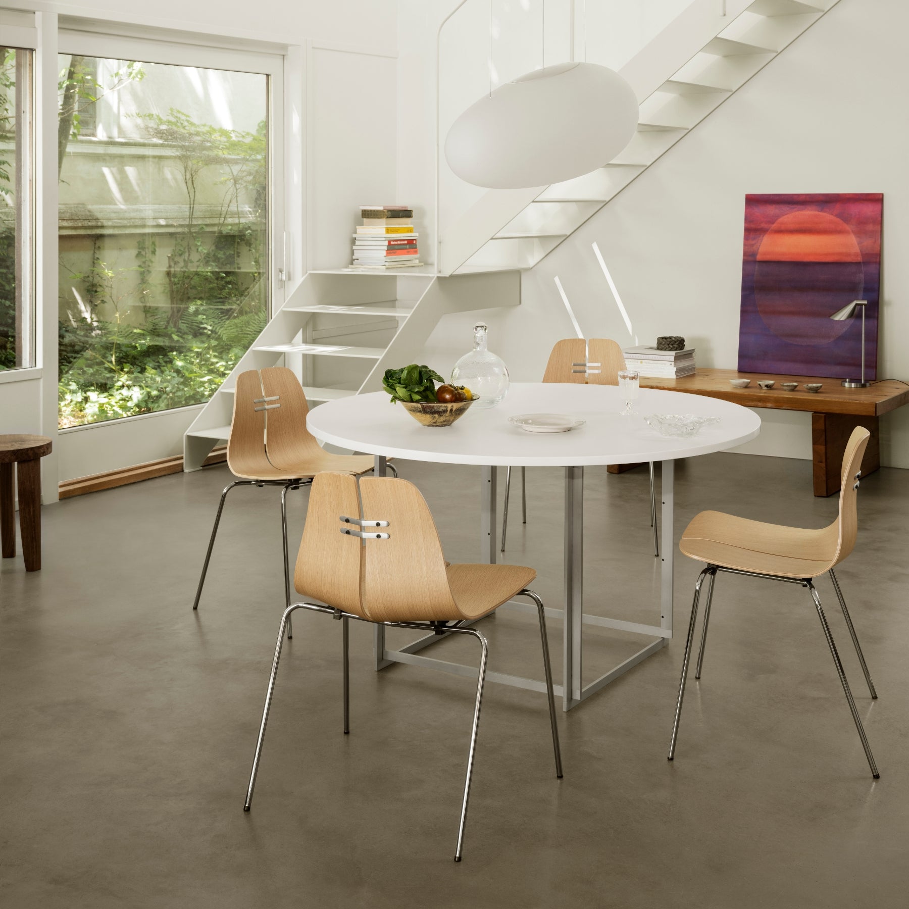PK3™ fås i eg, valnød eller sortfarvet askefinér, kombineret med stel i krom. Den kompakte størrelse og mulighed for stabling gør stolen ideel til både private hjem og professionelle miljøer – og den kan tilkøbes med et diskret sammenkoblingsbeslag til brug i rækker.