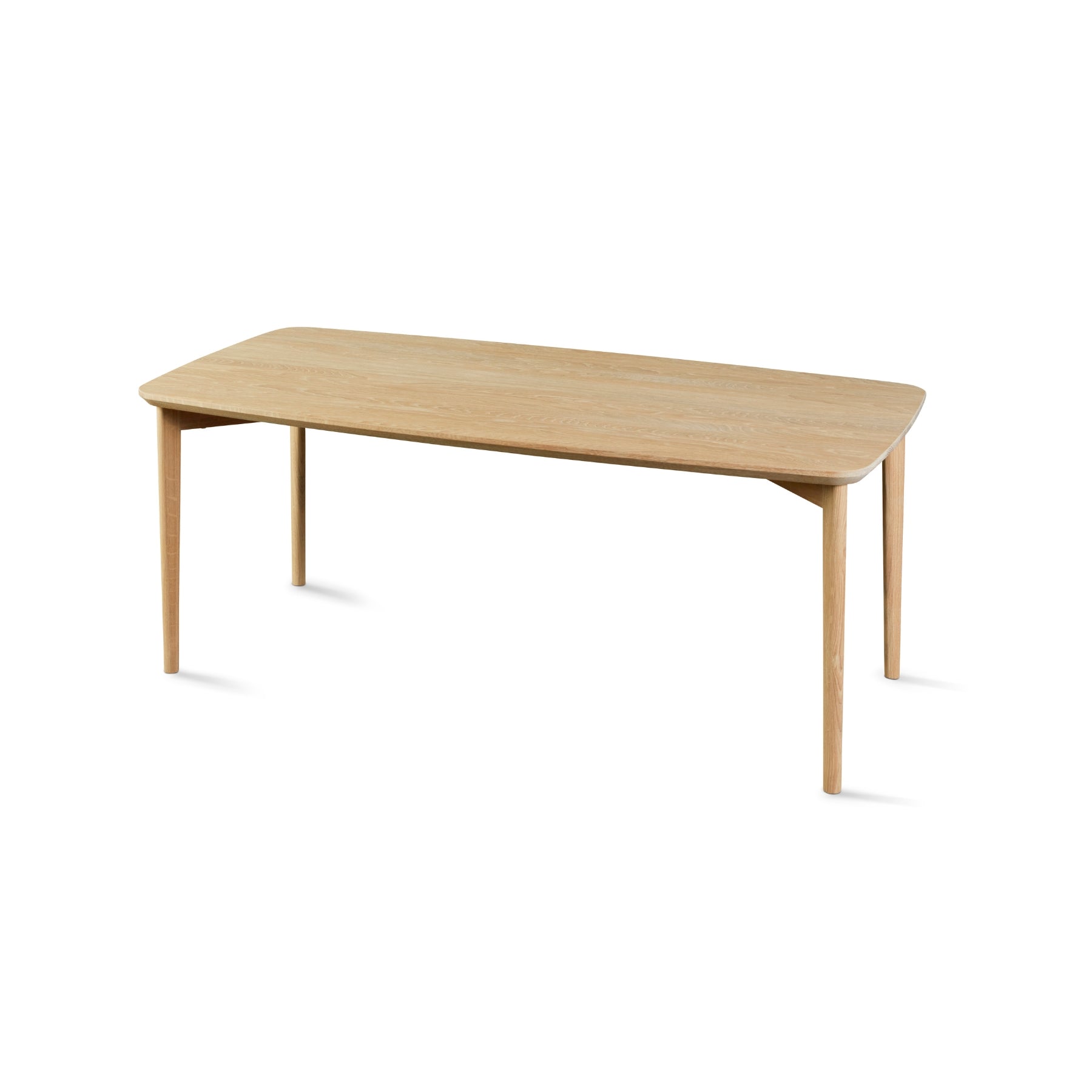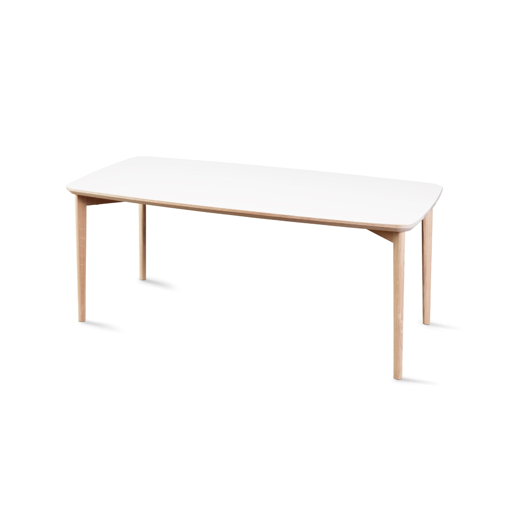 Den rektangulære bordplade giver en generøs overflade, der fungerer ideelt i samspil med en større sofagruppe – uden at virke dominerende i rummet. Sofabordet har et elegant stel bestående af fire solide træben med bløde, afrundede hjørner, som harmonerer smukt med bordpladens organiske linjer. Benene fås i to forskellige højder, så du kan tilpasse bordet til din sofa og det ønskede udtryk.