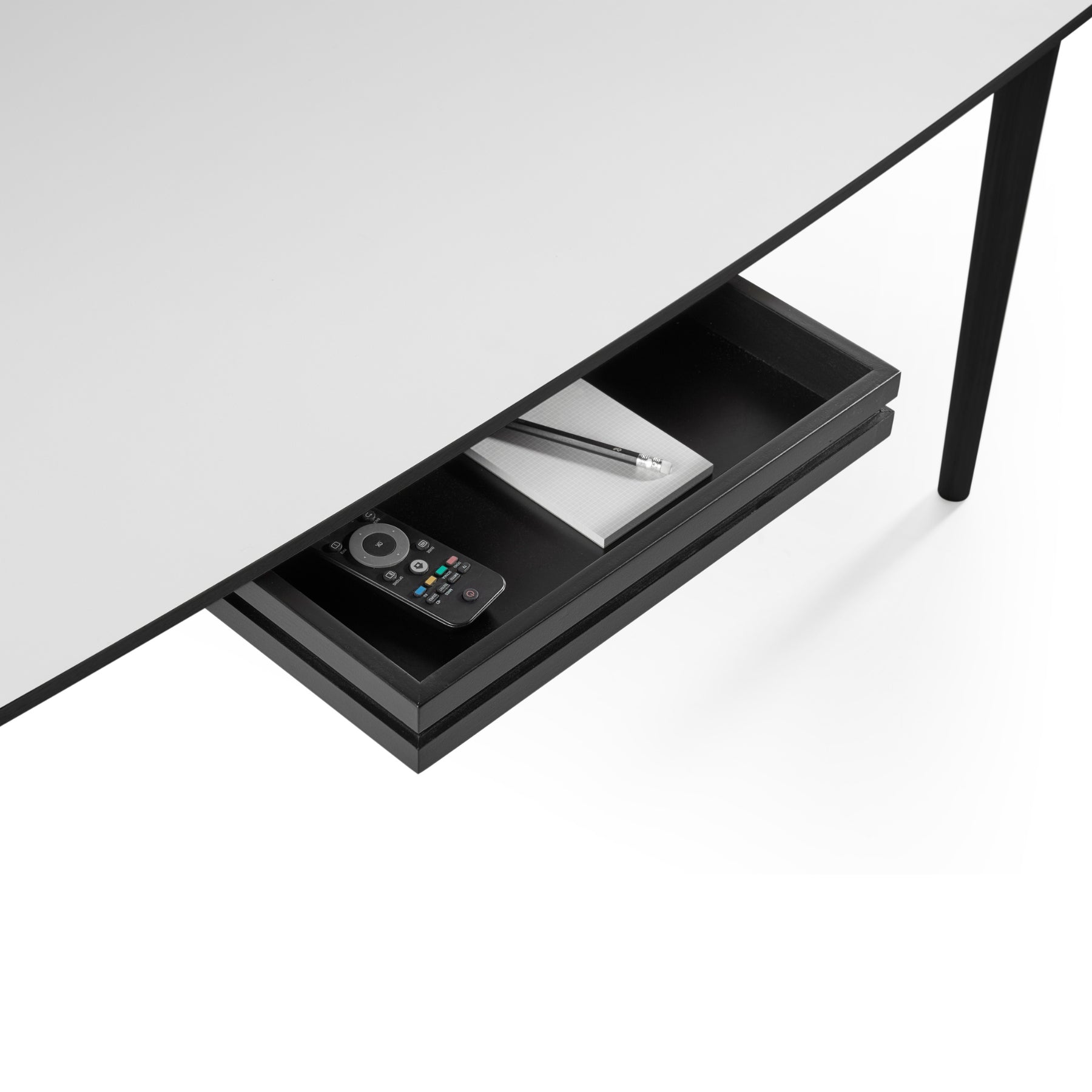 For ekstra funktionalitet kan sofabord #244 udstyres med en praktisk skuffe, der giver plads til opbevaring af fjernbetjeninger, opladere og andre småting – perfekt til et ryddeligt og roligt udtryk i stuen.