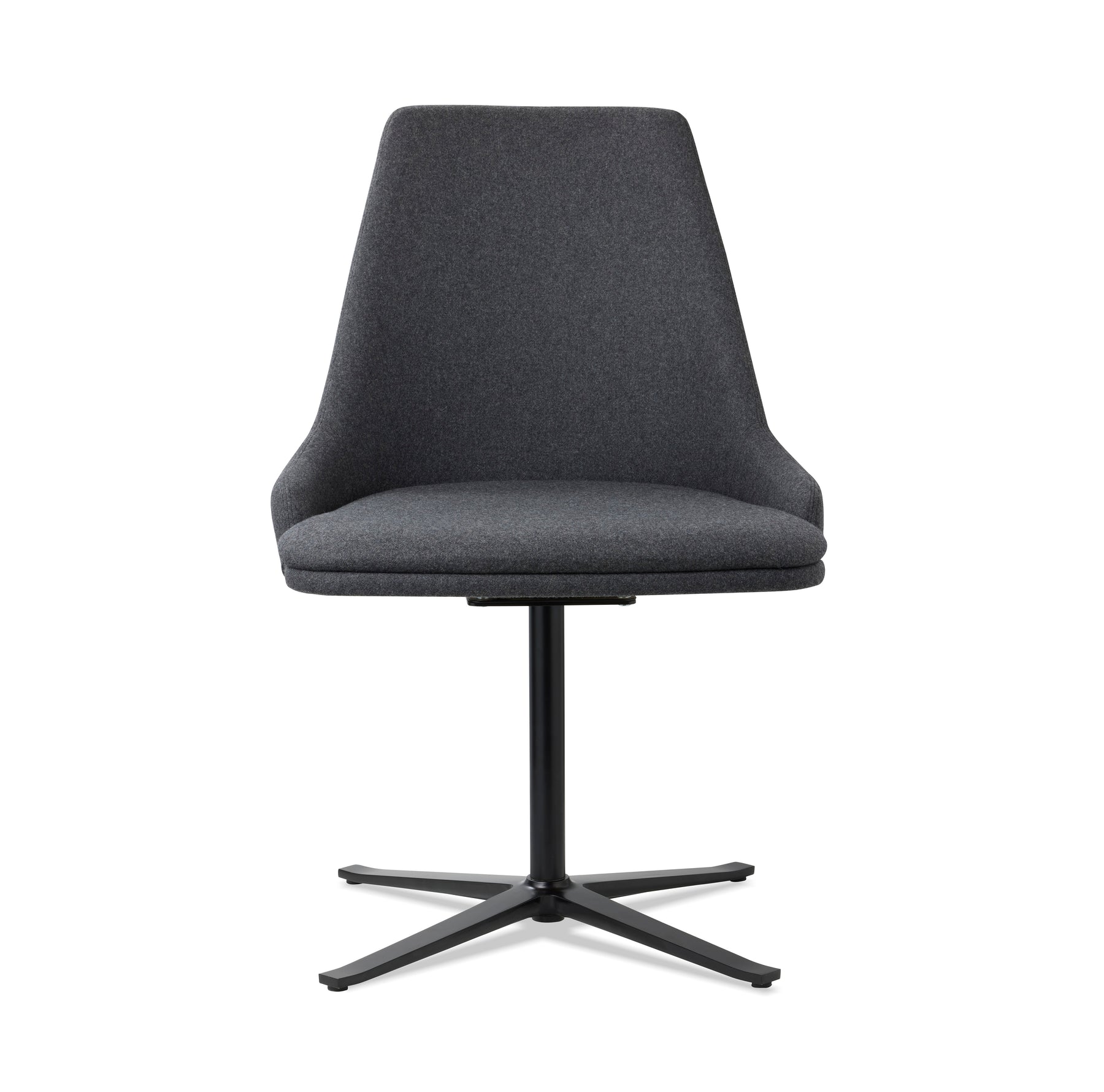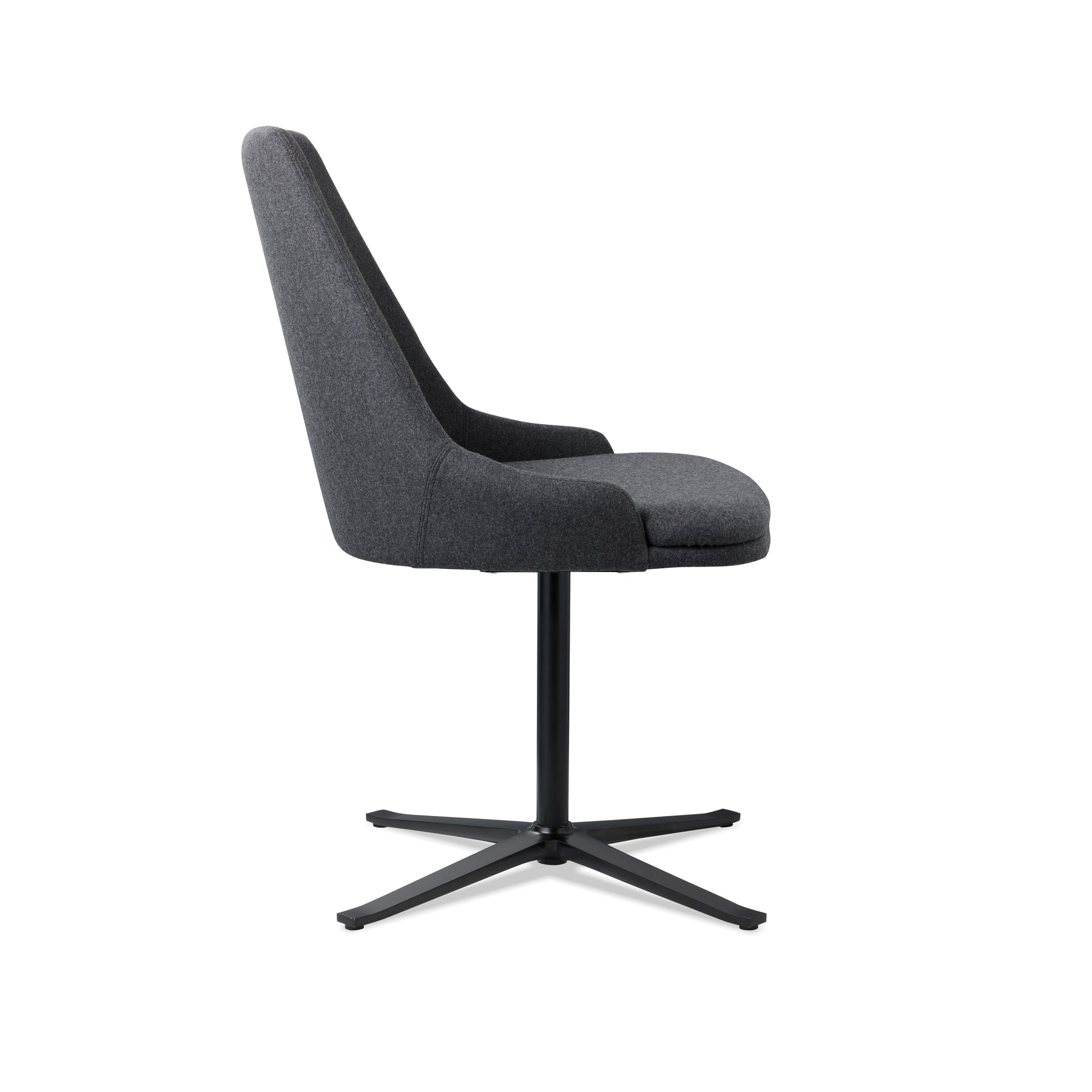 Stolen har en sort elegant drejebase, der gør det muligt at rotere stolen uden besvær for en dynamisk og fleksibel siddeoplevelse. Stolen fås også med en blank drejebase.
