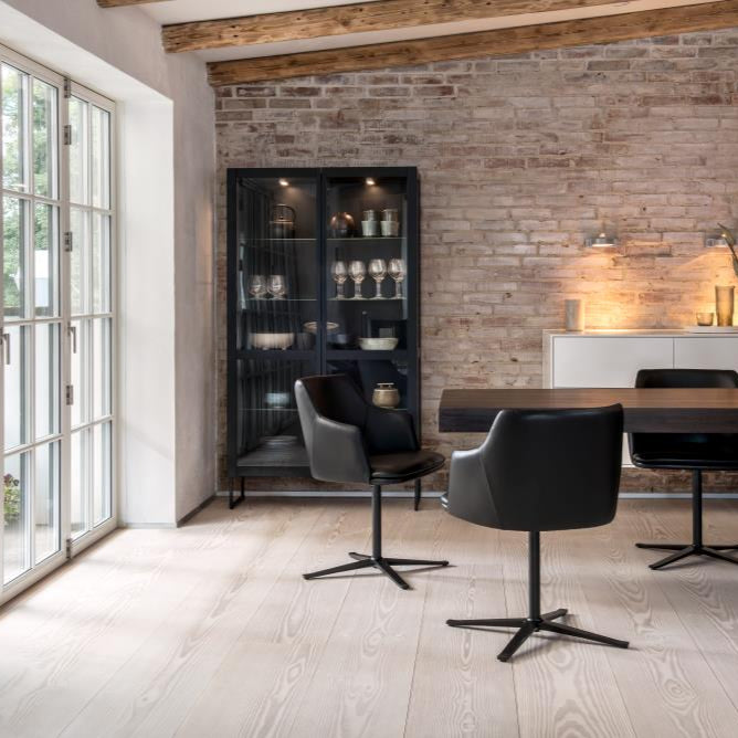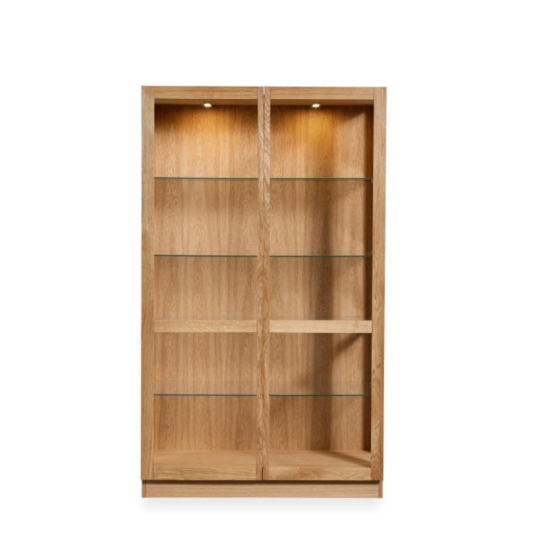 Vitrinen fås i flere træsorter og overflader, så du kan vælge netop den variant, der passer ind i dit hjem. Designet er skabt af Per Haansbæk/Haansbæk Design. Ønskes skabet med sokkel, eller i en variant som du ikke kan vælge her, kontakt da butikken for mere info.