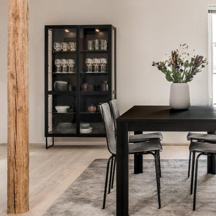 OBS: Vitrinen er udstillet i butikken i sort eg med stålben.