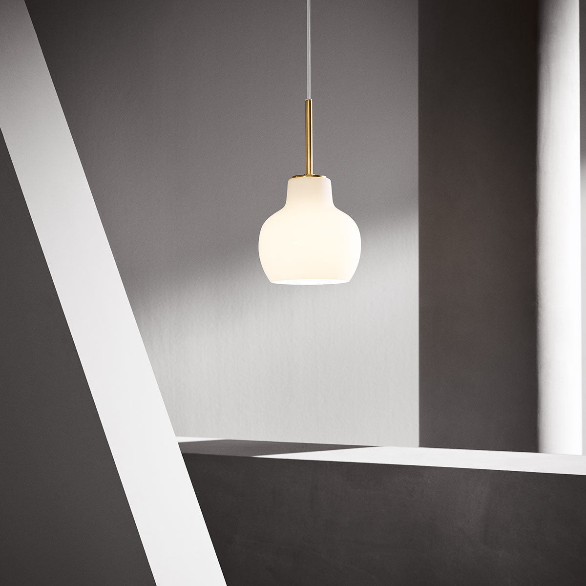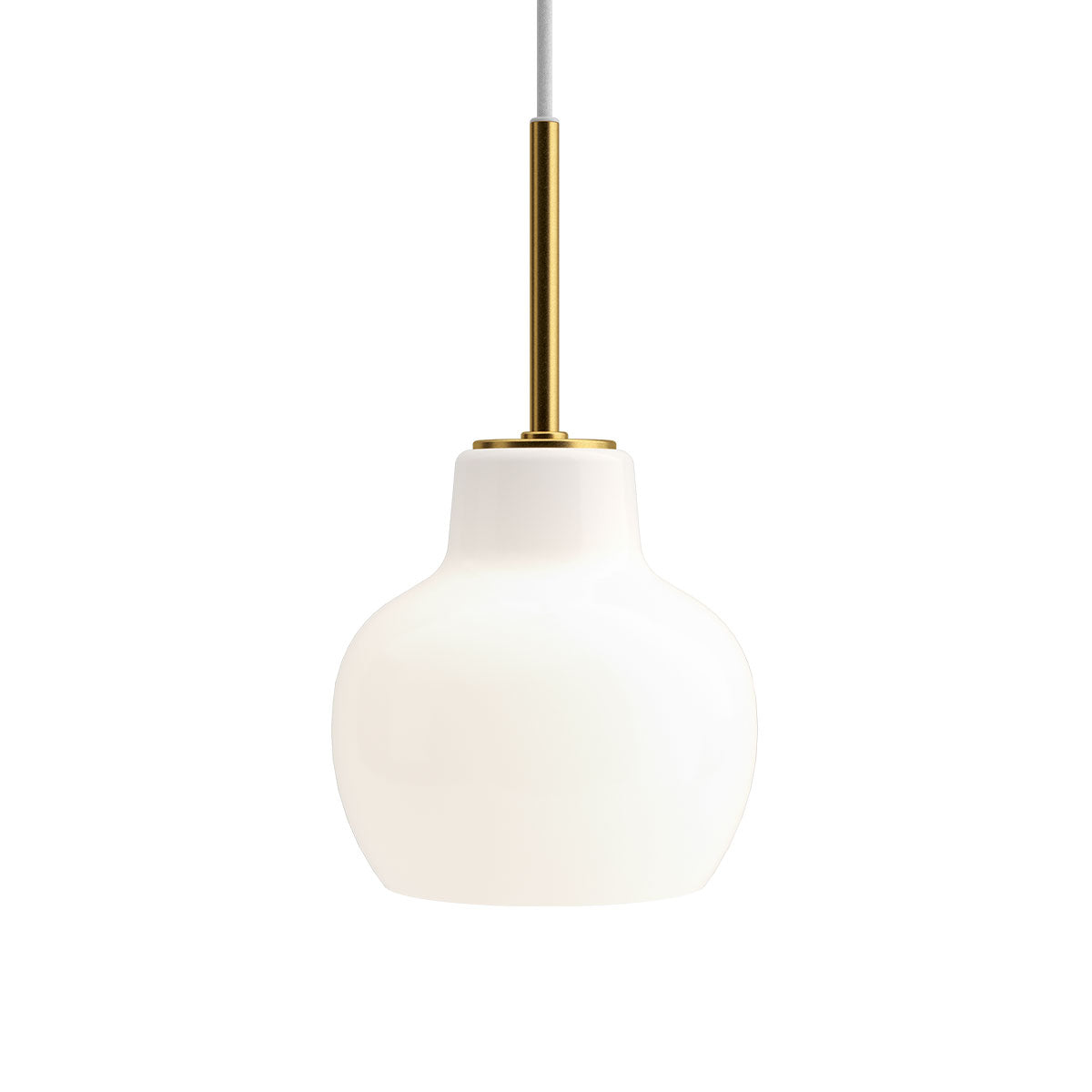 VL Ringkrone 1-pendlen udsender et nedadrettet lys omgivet af en varm og behagelig glød på grund af skærmen i hvidt opalt glas.